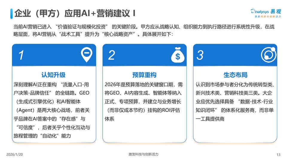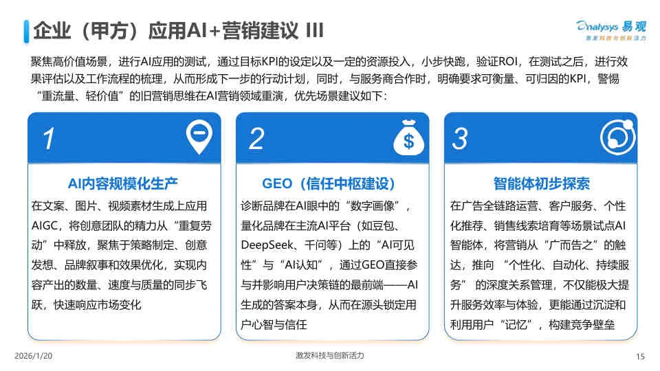 • Strategy: Make AI marketing a core strategic asset. Focus on two battlegrounds: GEO and AI agents.